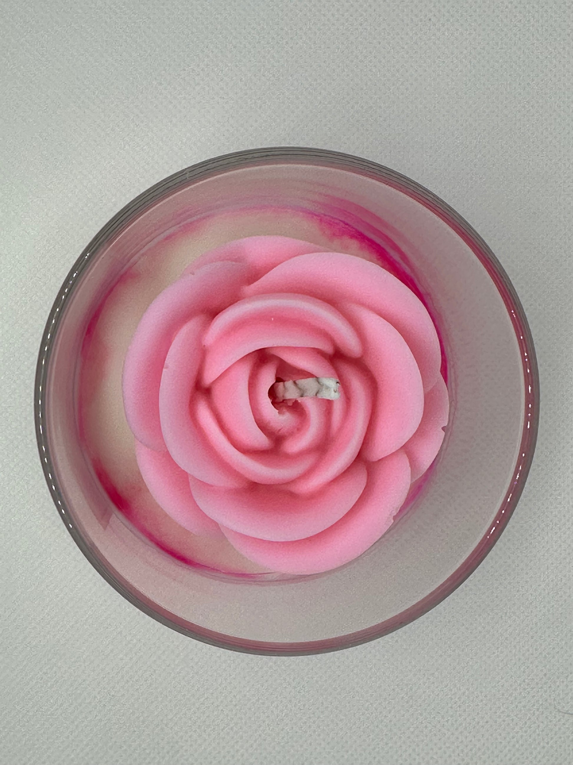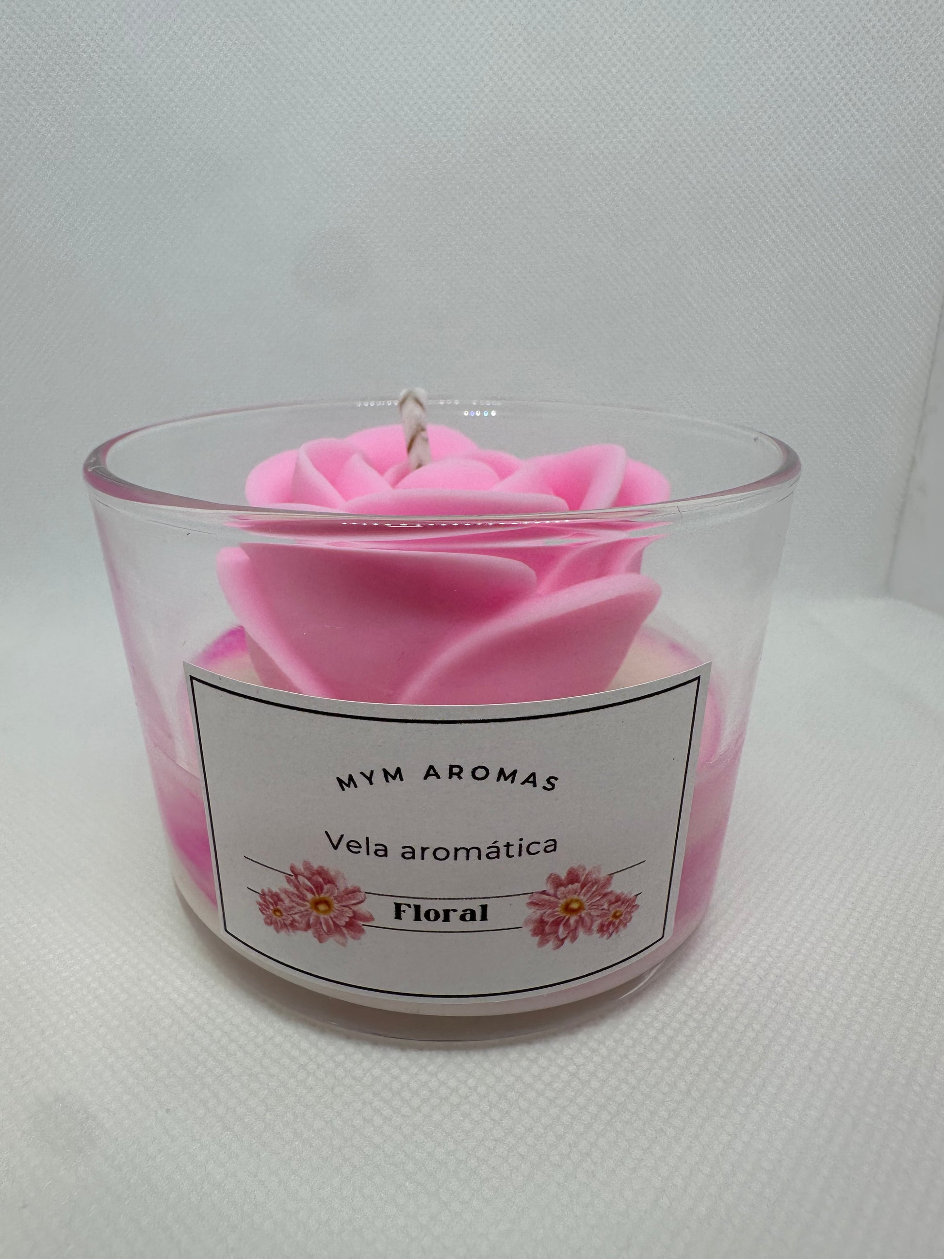 FLORAL, marmoleada con tonos rosados y con una flor rosada encima, con aroma floral, un aroma dulce y floral a la vez, un aroma muy femenino y natural, te encantara