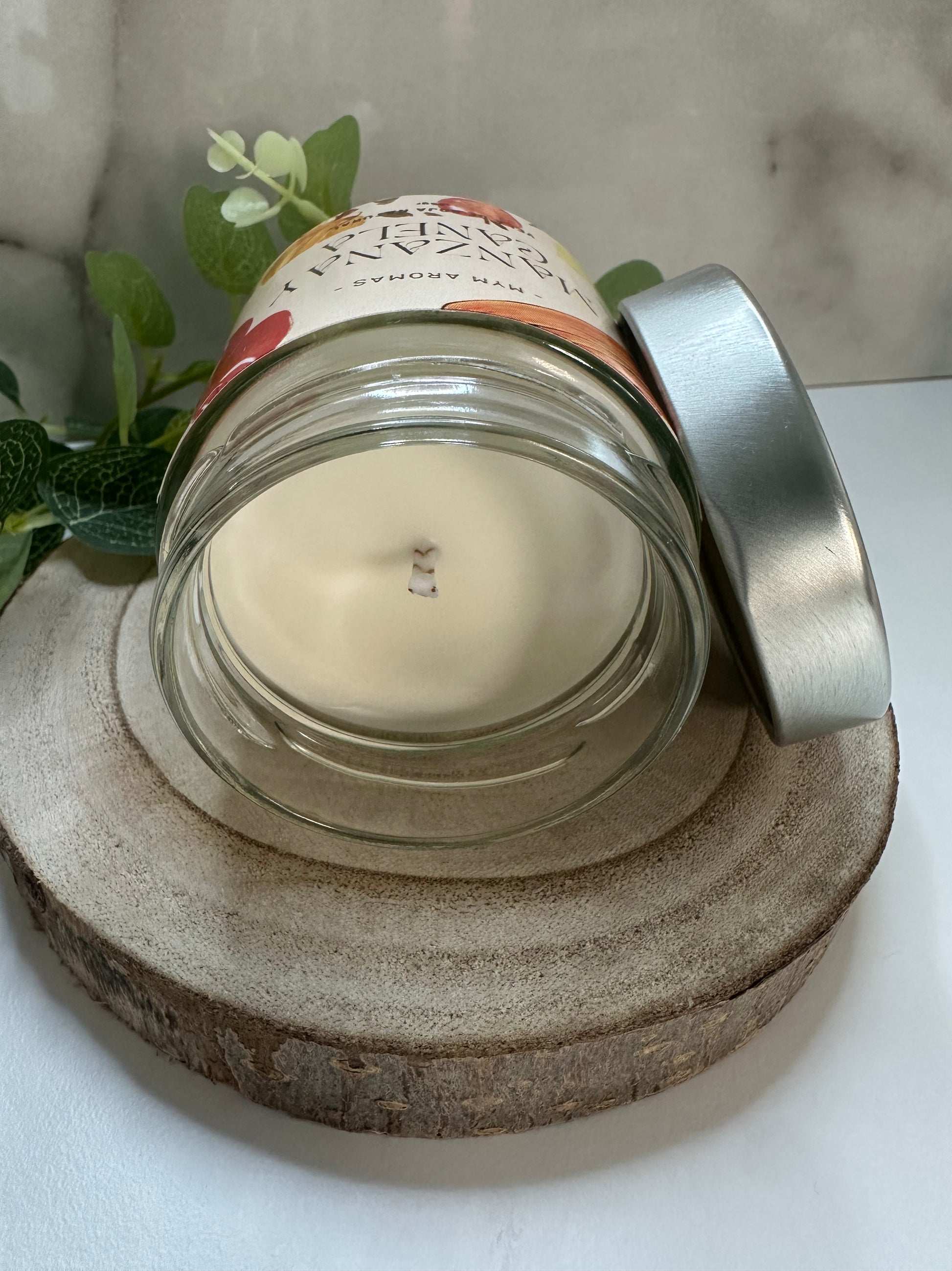 vela aromática que crea un ambiente cálido y acogedor ideal para el otoño e invierno y momentos de relajación con aroma manzana y canela, olor afrutado de la manzana y especiado de la canela, creerás oler un pastel de manzana recién hecho