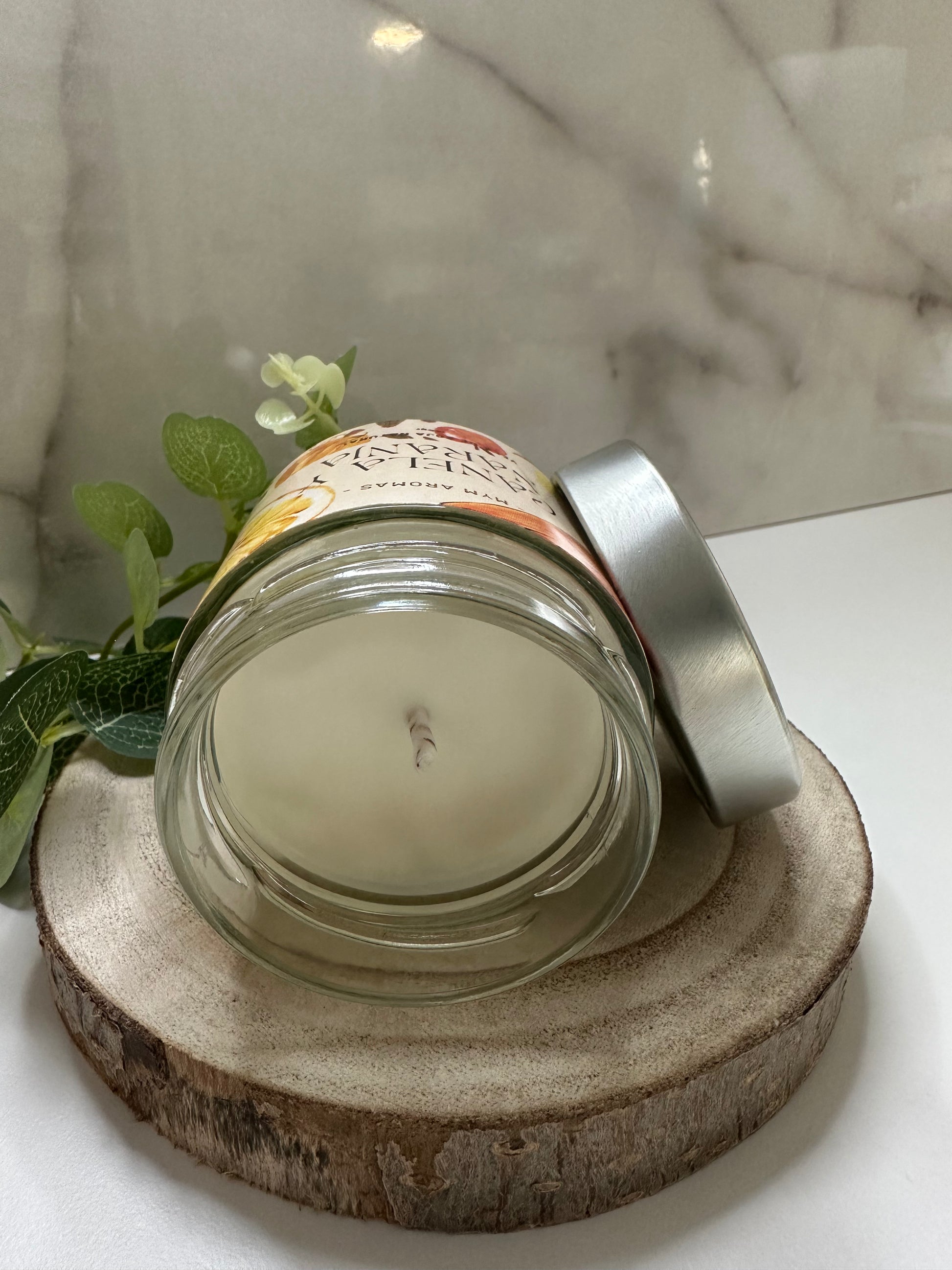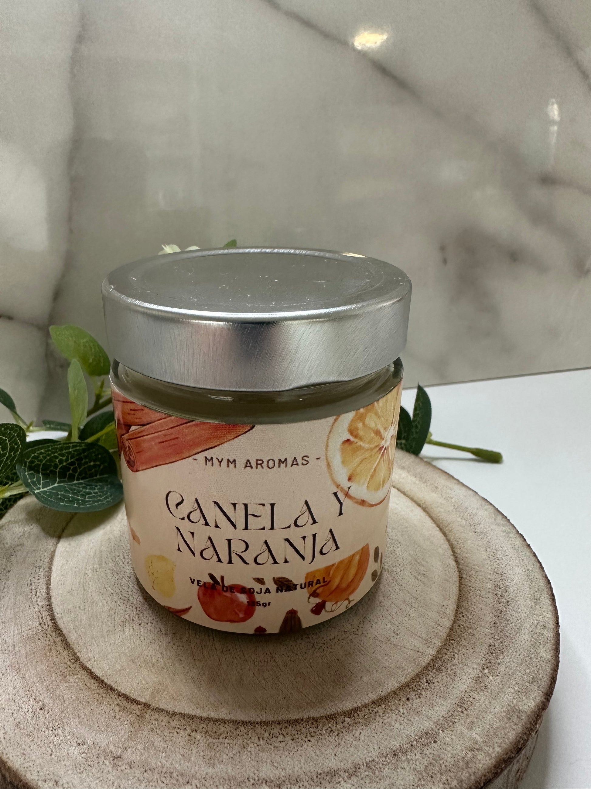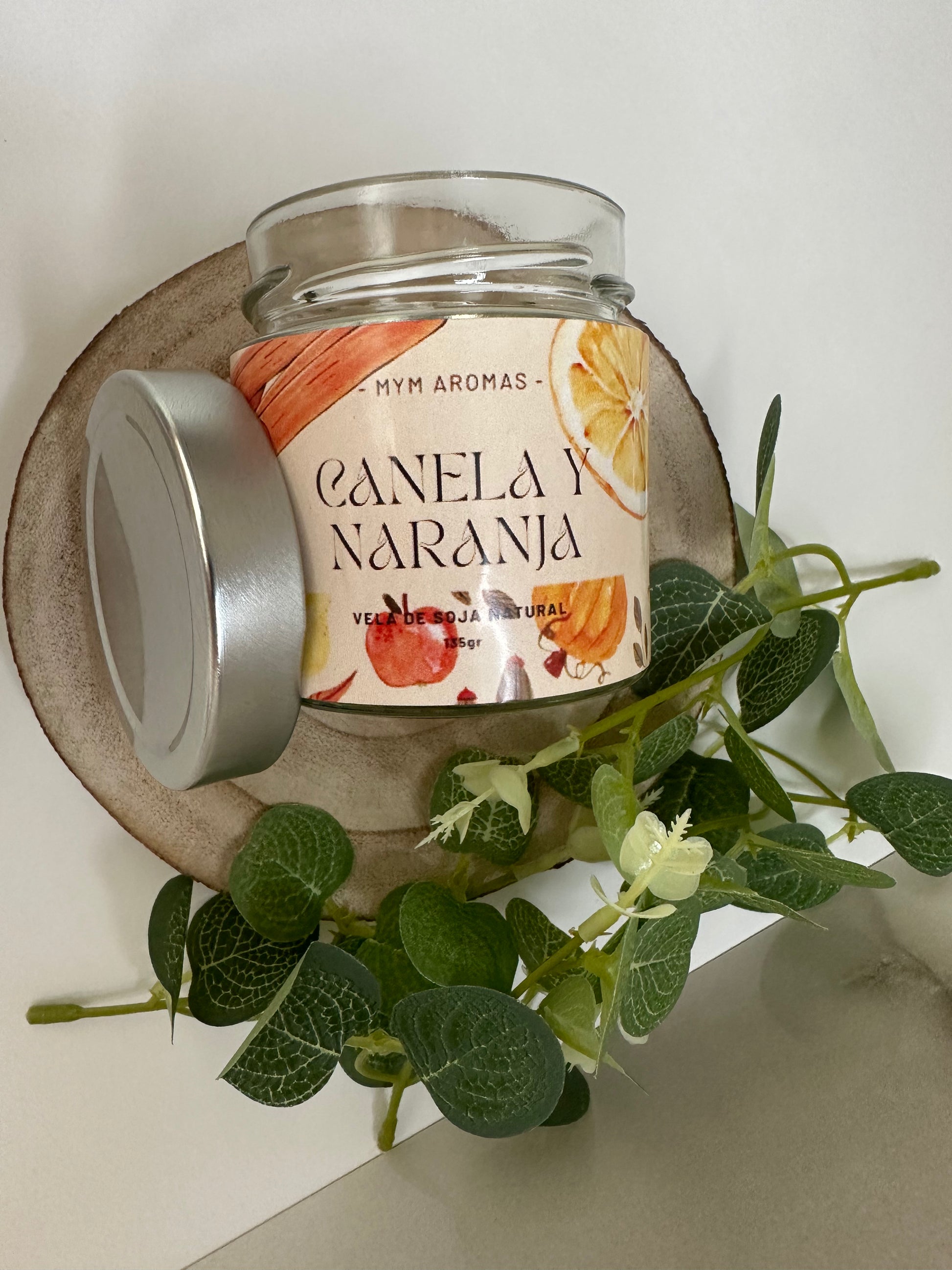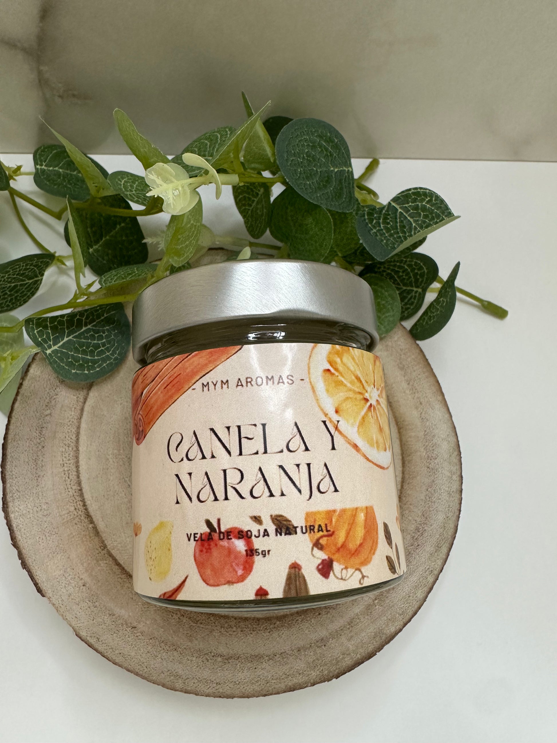 vela aromática de 135gr creada para crear una atmósfera acogedora, alegre y revitalizante, con aroma naranja canela, el frescor de la naranja con el calor especiado de la canela
