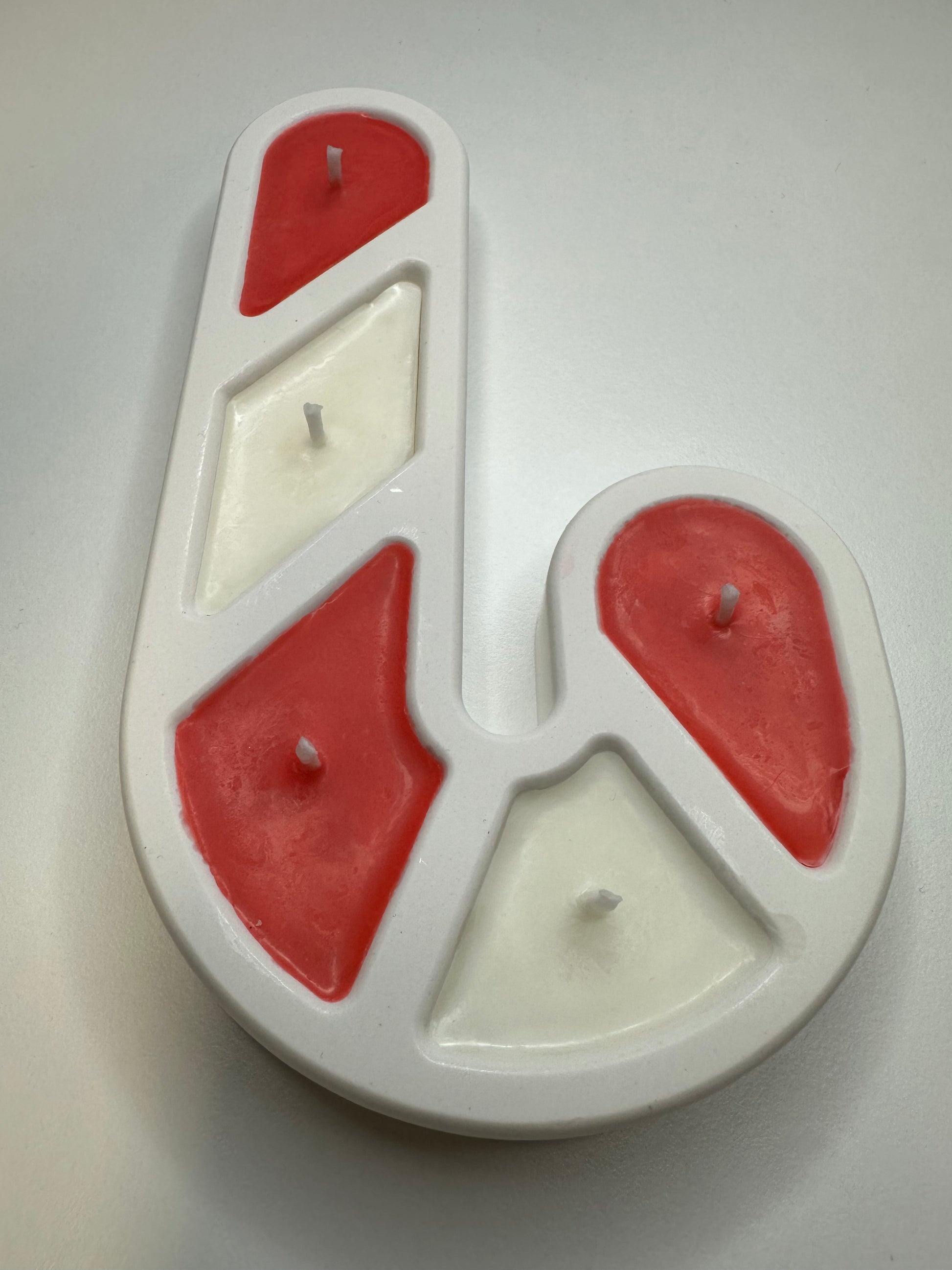 Bastón de piruleta, hecho con resina acrílica y cera de soja en roja y blanca, perfecto para decorar estas navidades con su aroma piruleta, es perfecto para tus noches de celebración