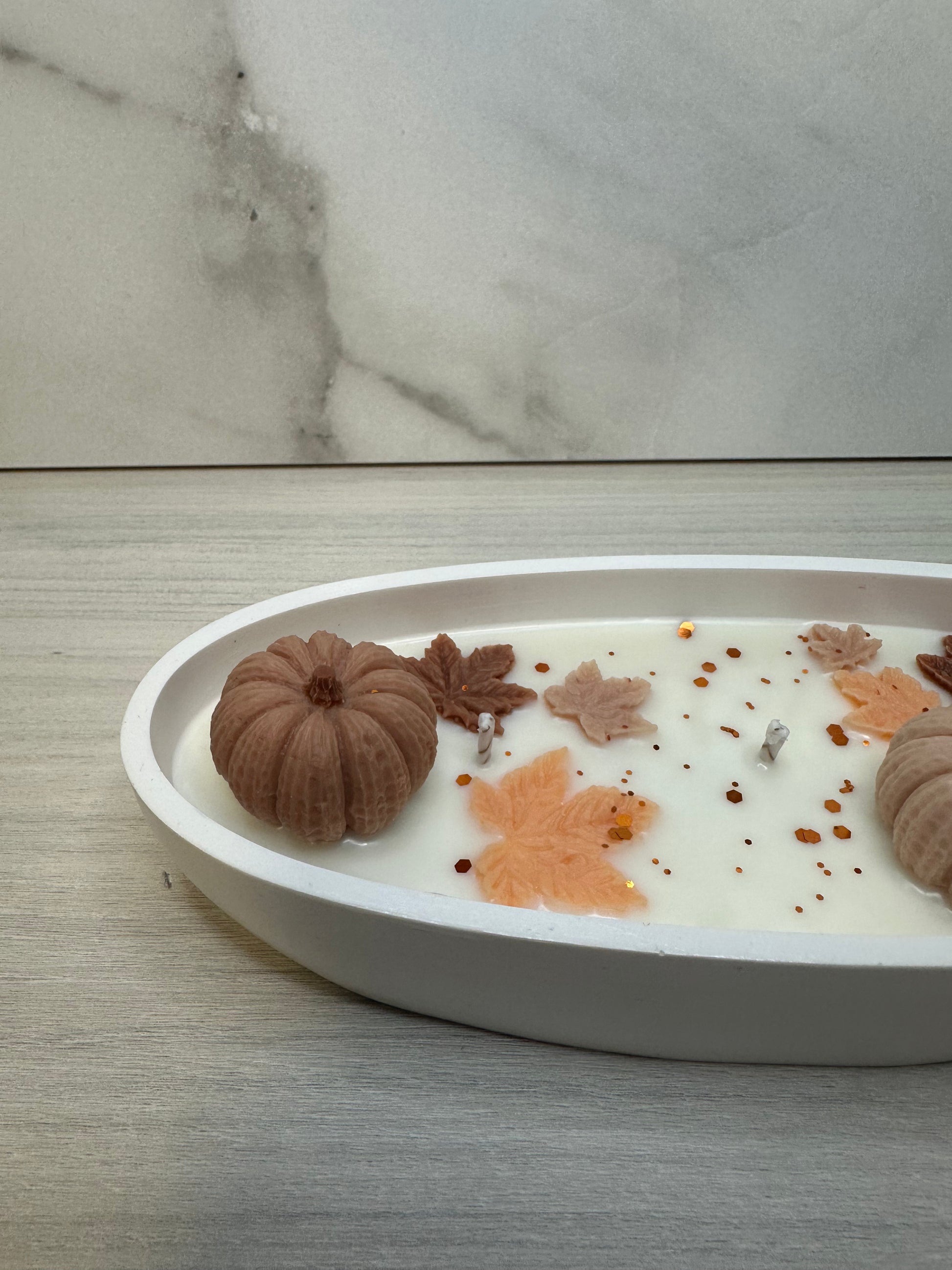 SUEÑO DE OTOÑO, vela decorativa en recipiente de resina, elegante y perfecta para cualquier rincón de tu casa con aroma a hoguera de otoño, olor a madera ahumada con especias cálidas como el clavo y la canela, conjunto que transmite la paz del bosque y sus aromas a madera.