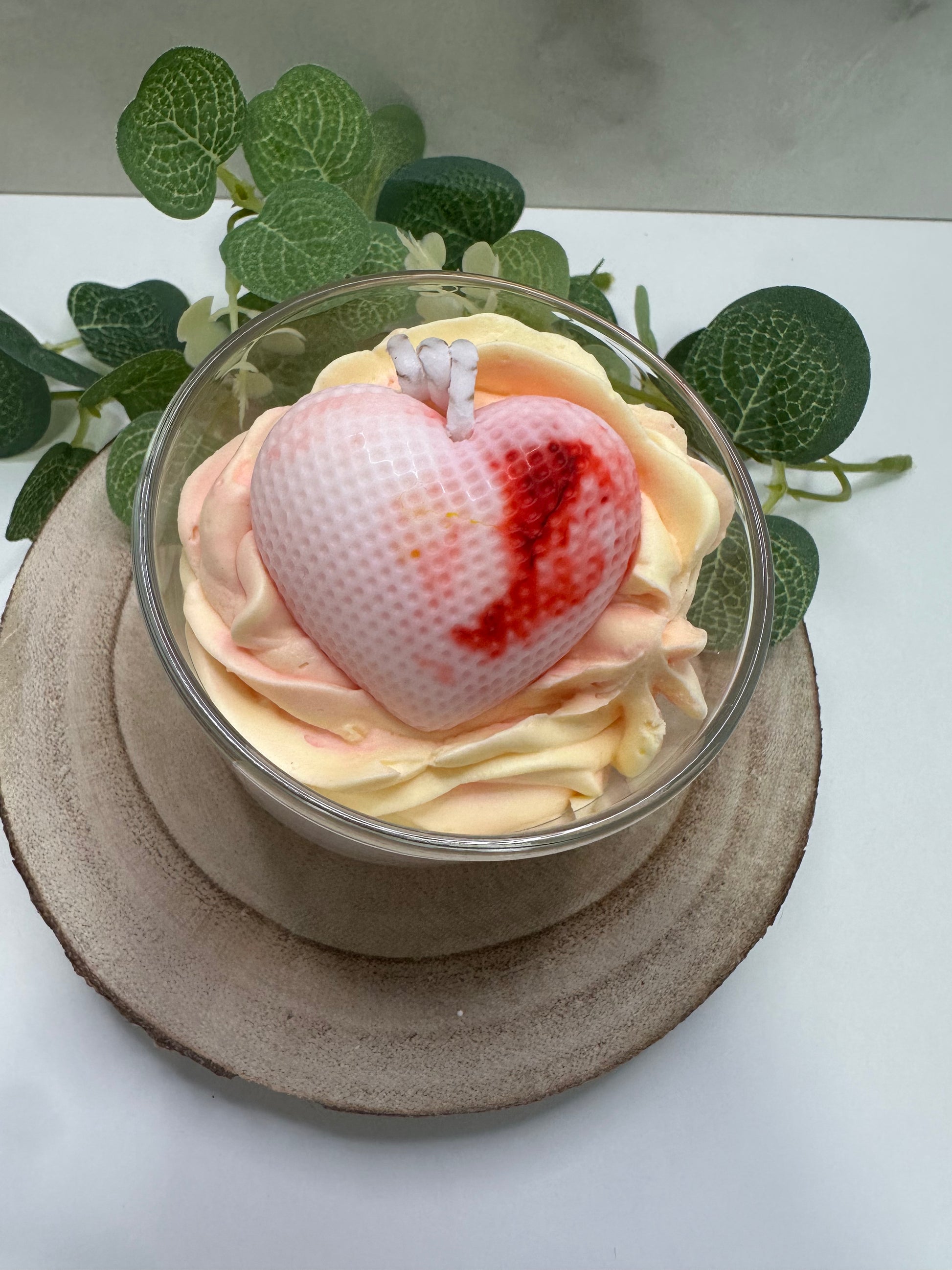 AMOR FRESCO, con chantilly en color amarillo y rojo con un corazón encima marmolado, con aroma limón y frambuesa, el citríco del limón combinado con el dulce de la frambuesa hace una explosión de aroma increíble