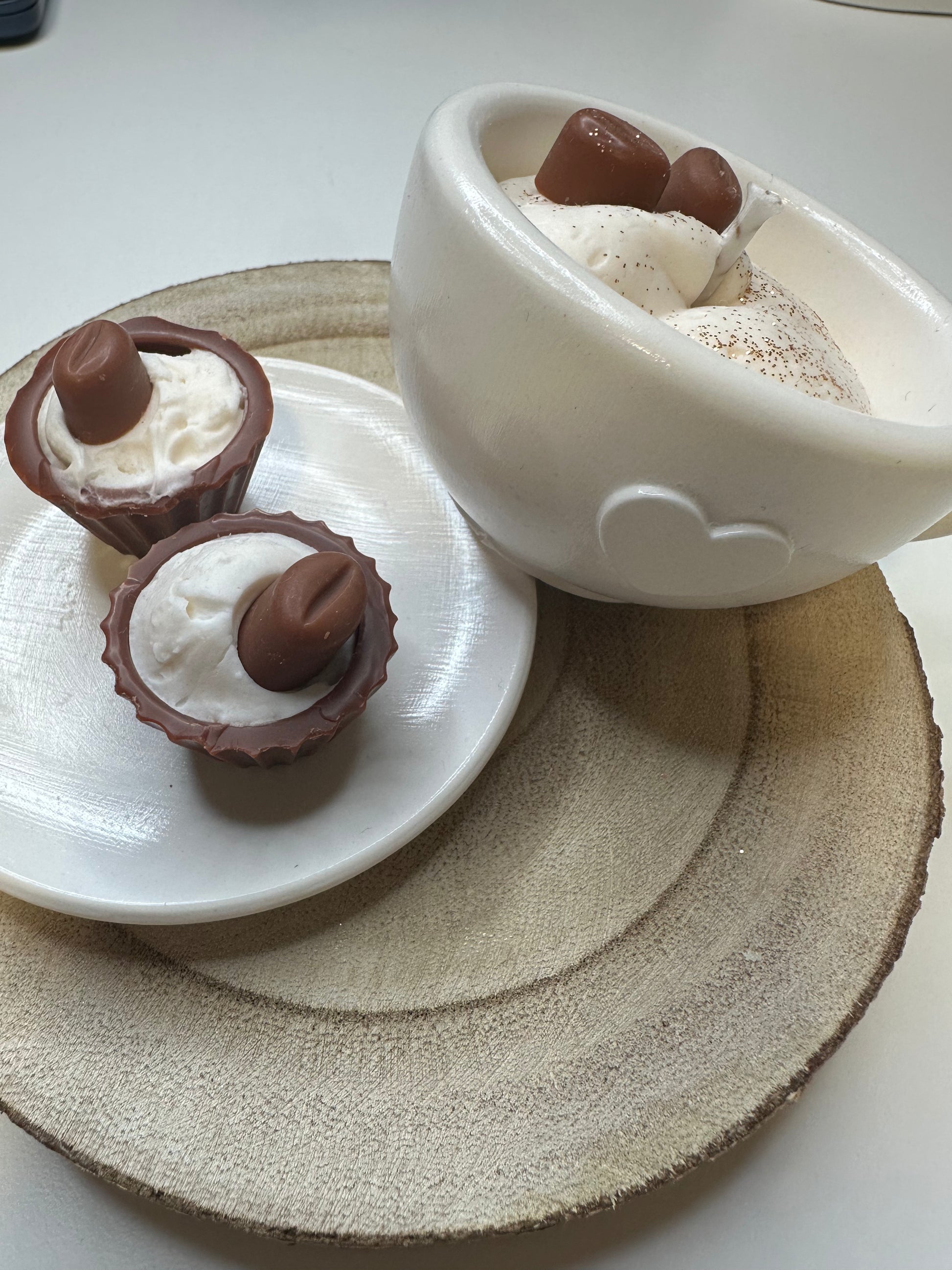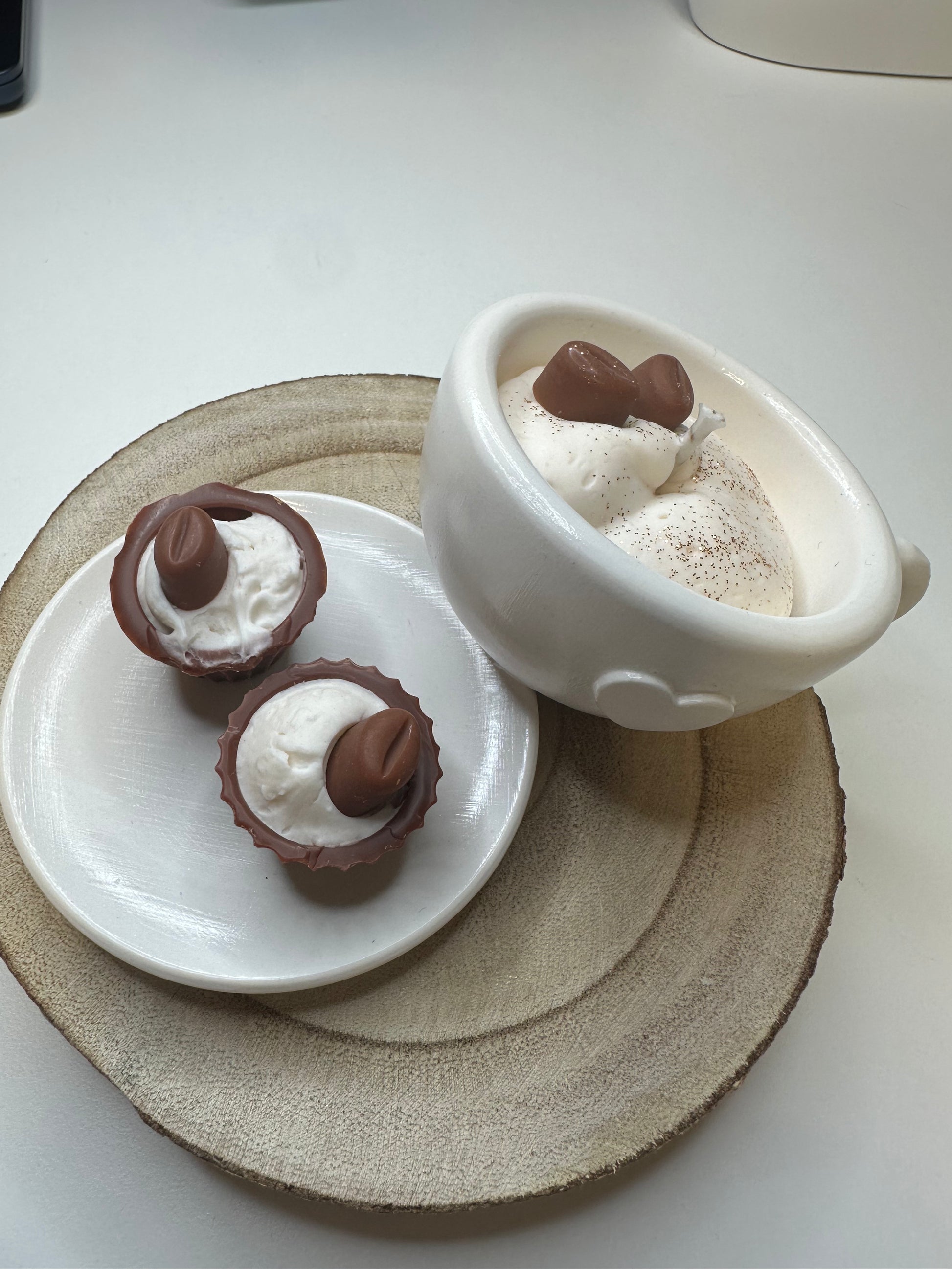 Este pack incluye 2 bombones con aroma a chocolate y café (tal y como veis en la imagen)
