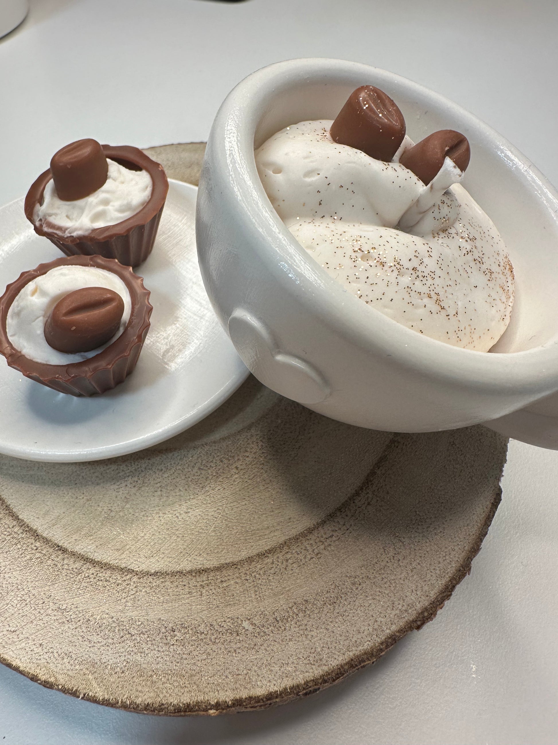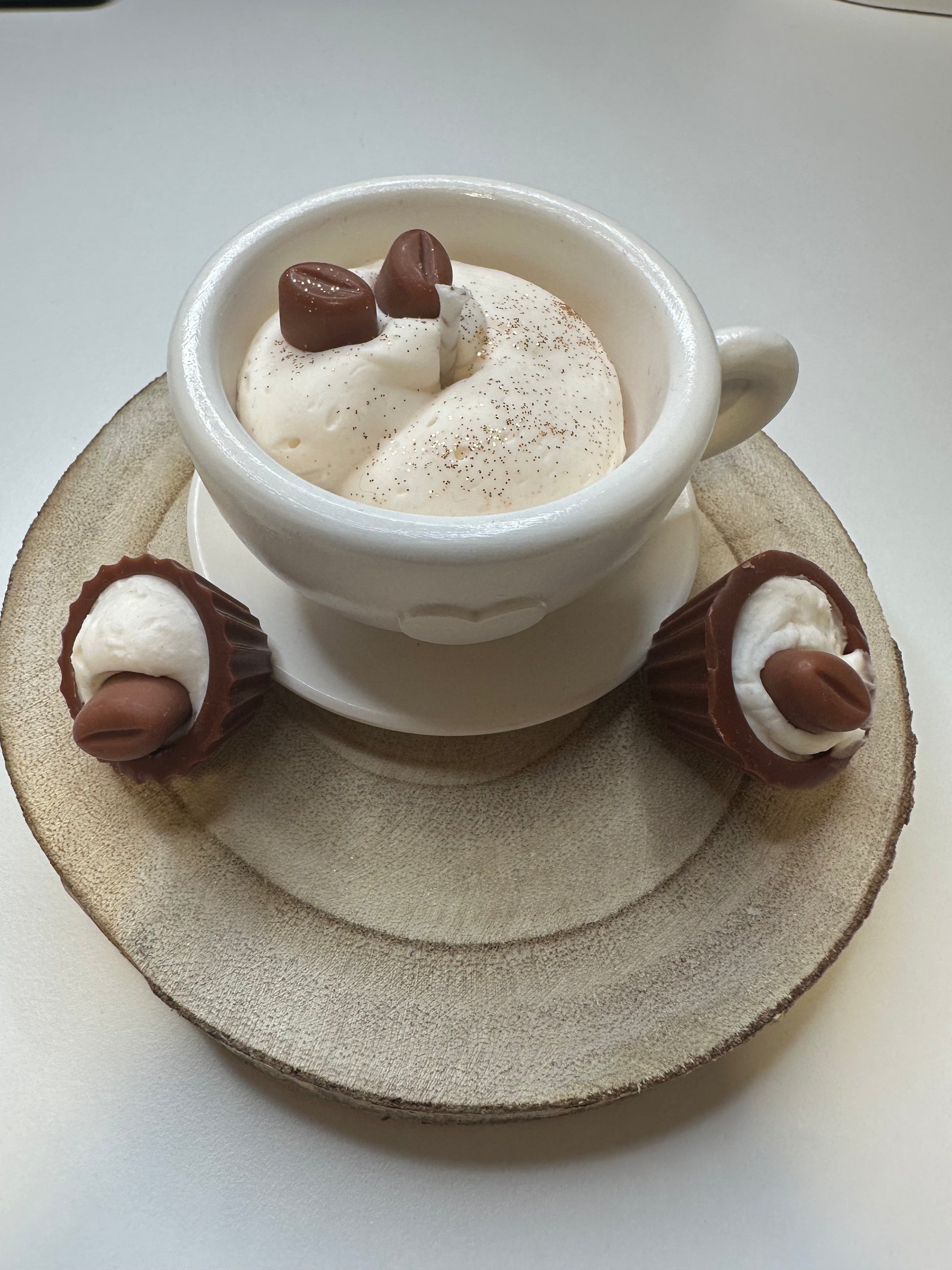 TARDE DE CAFÉ, vela que te recordara a esas tardes de café en compañía, a esos días lluviosos y fríos que solo quieres mantener las manos calentitas y saborear un muy café, perfecta con la tacita y plato de resina acrílica hecha artesanal, con aroma capuchino, olor a café que te recordara a esas tardes y mañanas de café, con su fantástica chantilly imitando la crema del capuchino, una vela tan real que cualquiera se pensara que es de verdad!