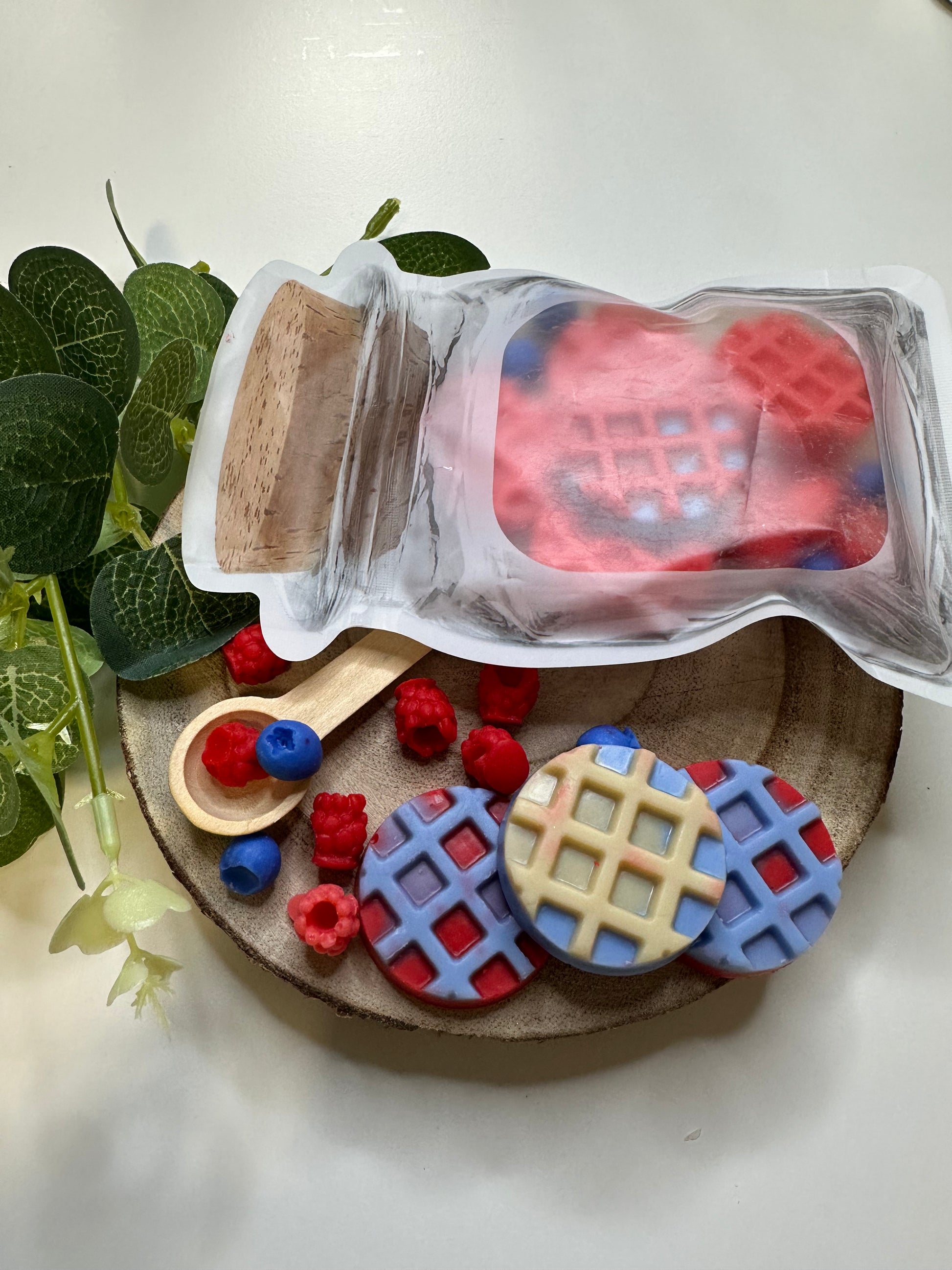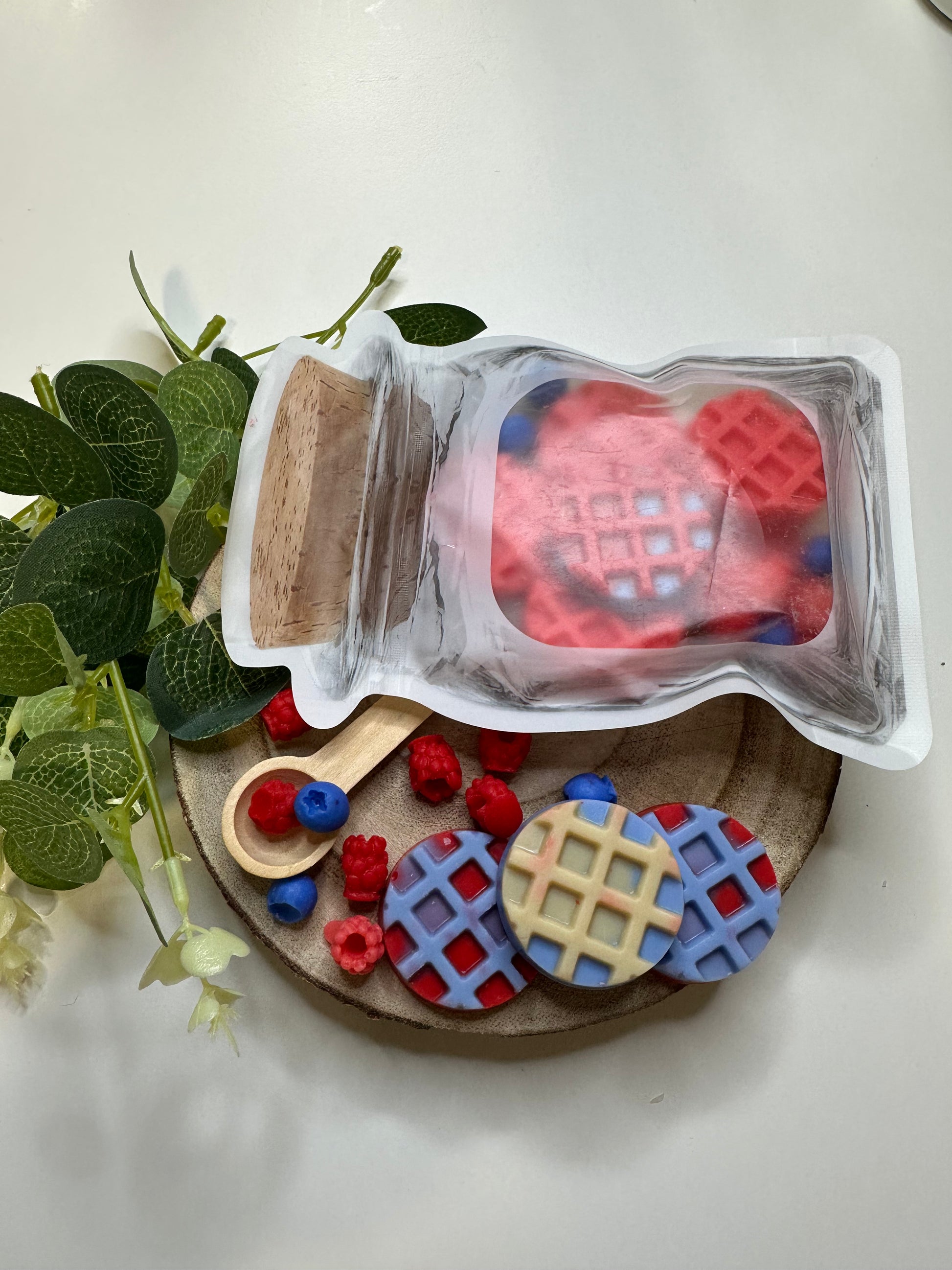 FRUTOS ROJOS, con formas a gofres y frambuesas y arándanos, con aroma frutos rojos, olor frutal y dulce